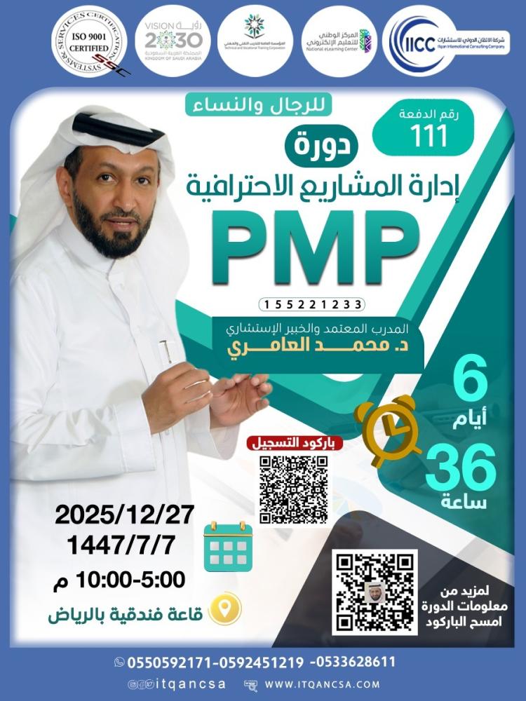 تأهيلك لاجتياز اختبار PMP من معهد إدارة المشاريع العالمي (PMI).