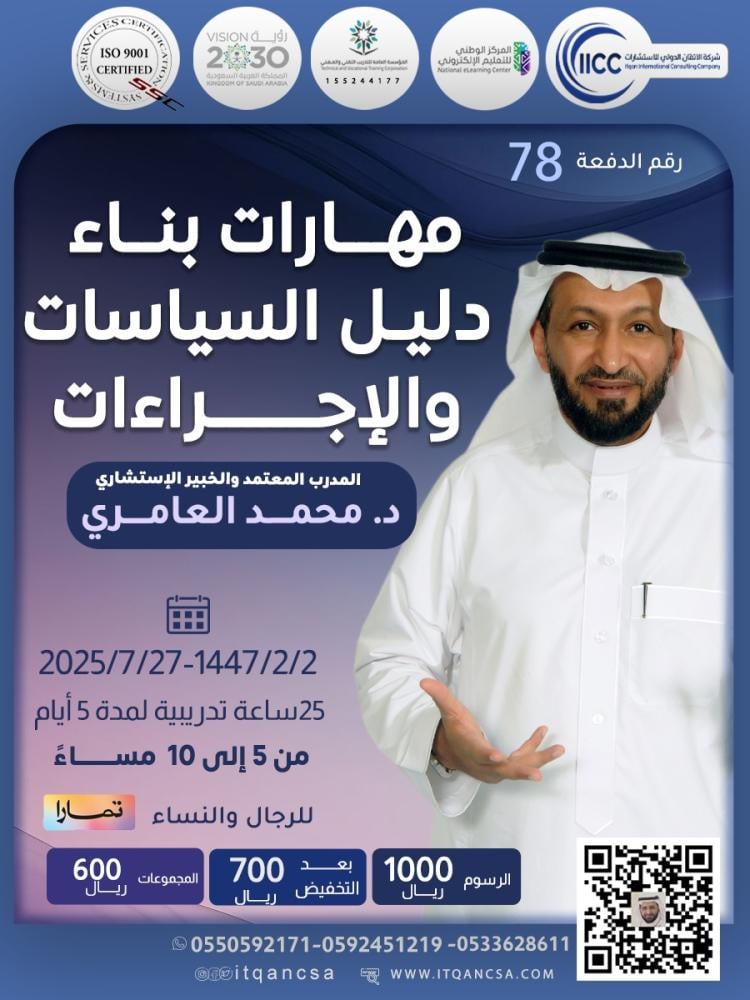 دورة مهارات بناء دليل السياسات والإجراءات (اولاين)