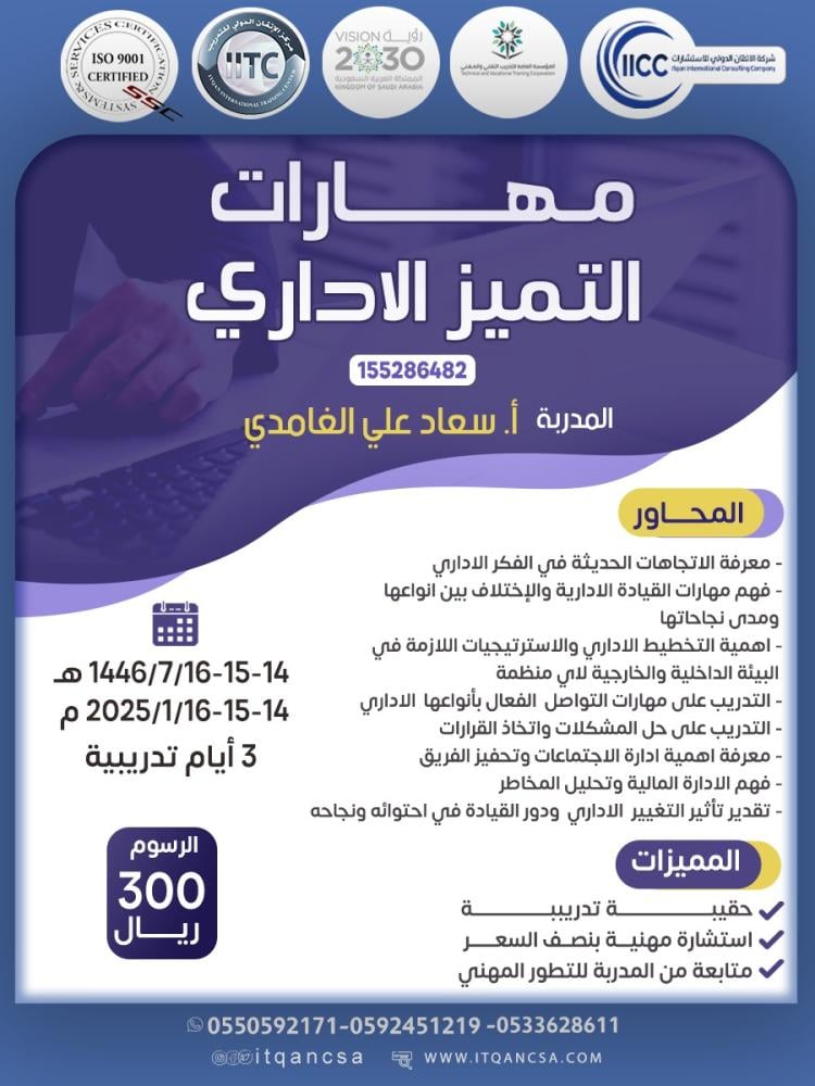 يسر مركز الاتقان الدولي للتدريب ان يقدم لكم دورة