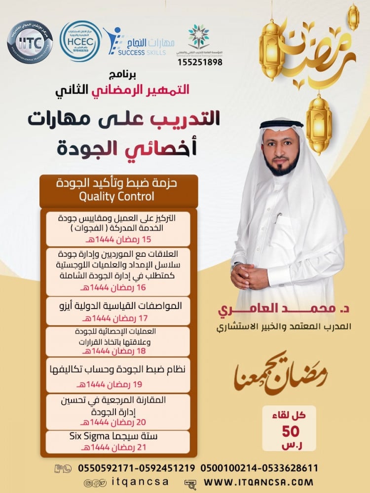 برنامج التمهير الرمضاني الثاني بعنوان ( التدريب على مهارات أخصائي الجودة)