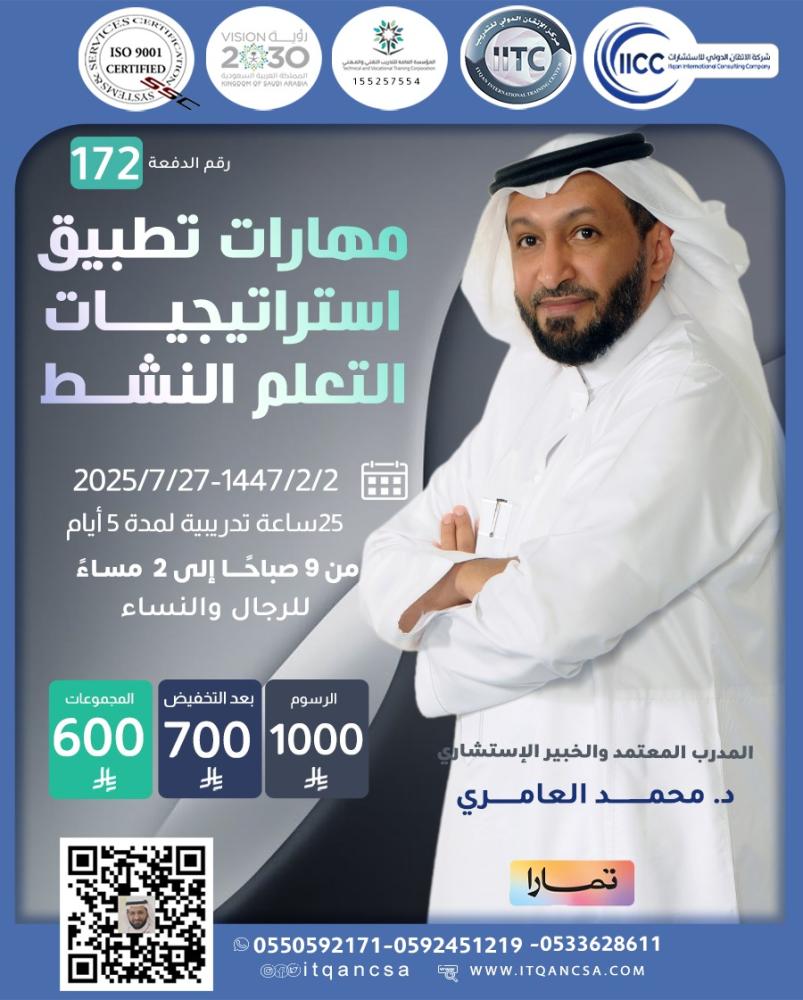 دورة مهارات تطبيق اتستراتيجيات التعلم النشط– الدفعة (172)